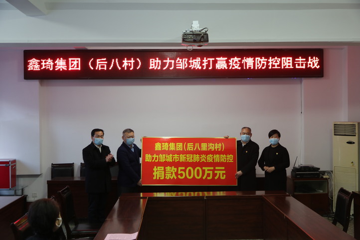 鑫琦集團(tuán)(后八村)助力鄒城打贏疫情防控阻擊戰(zhàn),捐款500萬(wàn)元(右二)