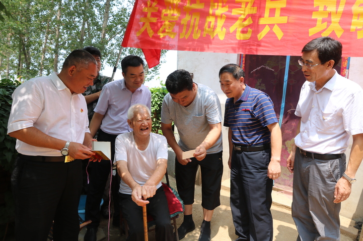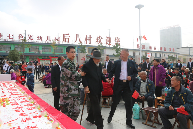 重陽(yáng)節(jié),宋偉帶著村里百歲老人切壽糕