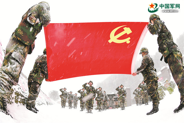 在嚴(yán)寒條件下進(jìn)行實(shí)兵對(duì)抗演練的火箭軍某部開(kāi)展戰(zhàn)地動(dòng)員,組織向黨旗宣誓活動(dòng)。趙吉壘攝