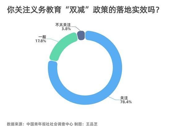 對于“雙減”政策,78.4%的受訪者關(guān)注其落地實(shí)效。其中,41.8%的受訪者非常關(guān)注。