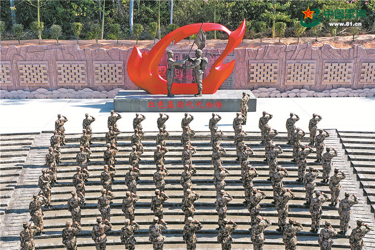 近日,第73集團(tuán)軍某旅組織官兵在旅英烈廣場(chǎng)開(kāi)展紅色基因傳承教育。圖為官兵面朝英烈雕像,重溫入伍誓詞。賴(lài) 坤攝