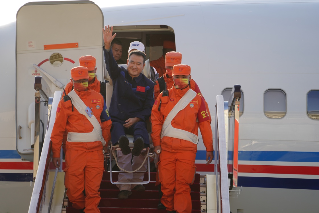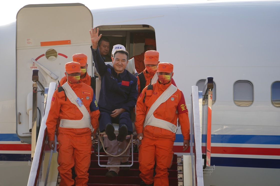 新華社北京4月16日電(記者郭明芝、田定宇)據(jù)中國(guó)載人航天工程辦公室消息,圓滿完成神舟十三號(hào)載人飛行任務(wù)的航天員翟志剛、王亞平、葉光富,于2022年4月16日下午乘坐任務(wù)飛機(jī)平安抵達(dá)北京??臻g站階段飛行任務(wù)總指揮部領(lǐng)導(dǎo)和成員到機(jī)場(chǎng)迎接。