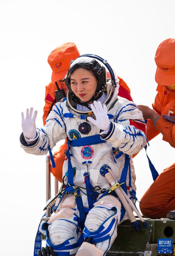 4月16日,神舟十三號載人飛船返回艙在東風著陸場成功著陸。這是航天員王亞平安全順利出艙。新華社記者 連振 攝