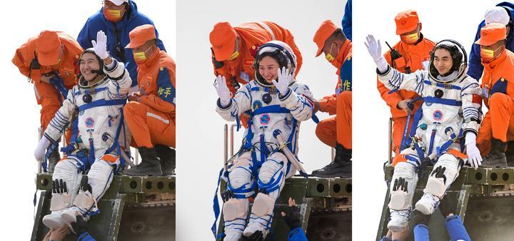 2022年4月16日9時(shí)56分,在太空遨游半年的神舟十三號(hào)飛船在東風(fēng)著陸場(chǎng)平安降落,太空“出差”的3名航天員翟志剛、王亞平、葉光富安全順利出艙,重回地球的懷抱。