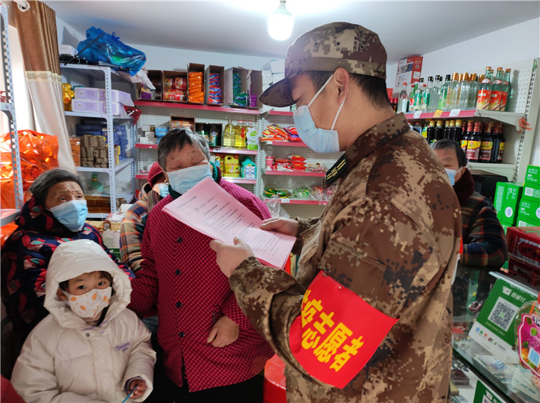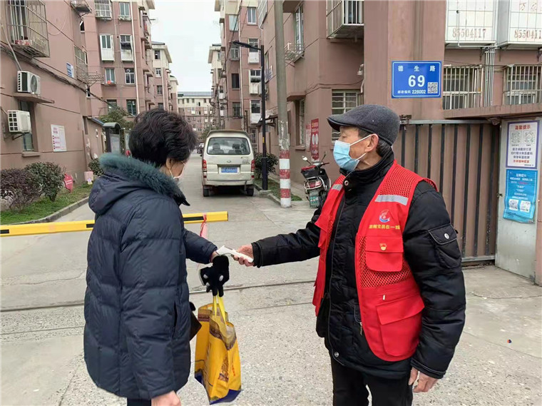 崇川區(qū)退役軍人志愿者開展防疫宣傳。