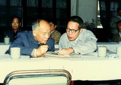 孟執(zhí)中(右)生前工作照。中國航天報資料圖片