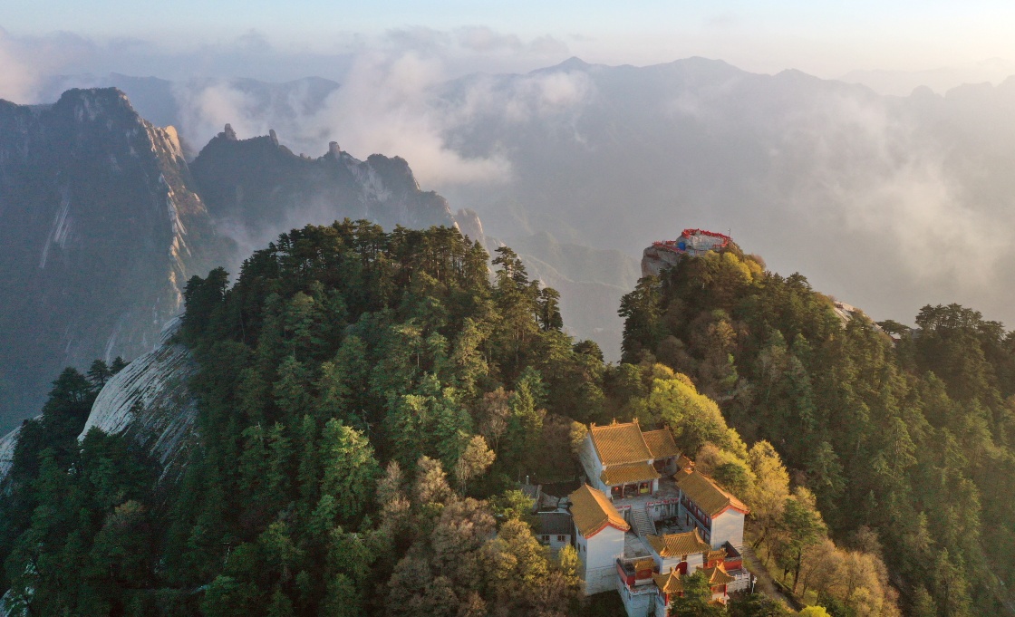 云霧中的華山南峰(4月28日攝,無人機(jī)照片)。