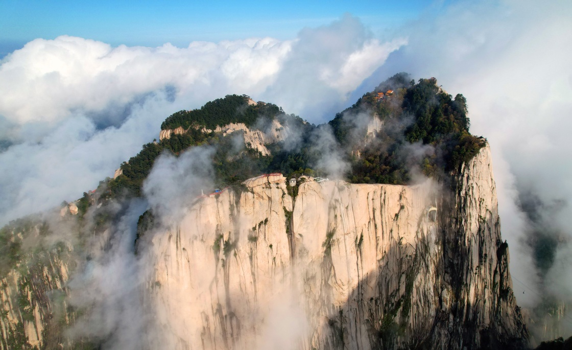 云霧縹緲的華山西峰(4月28日攝,無(wú)人機(jī)照片)。