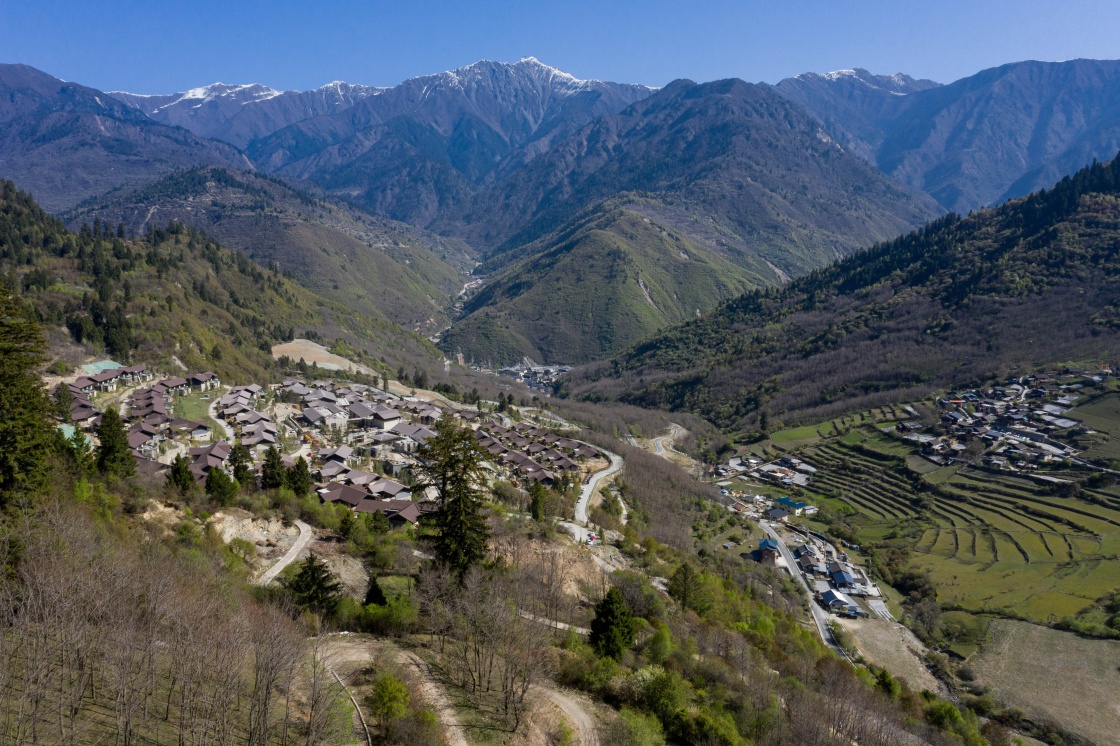 4月25日拍攝的中查溝景色(無(wú)人機(jī)照片)。