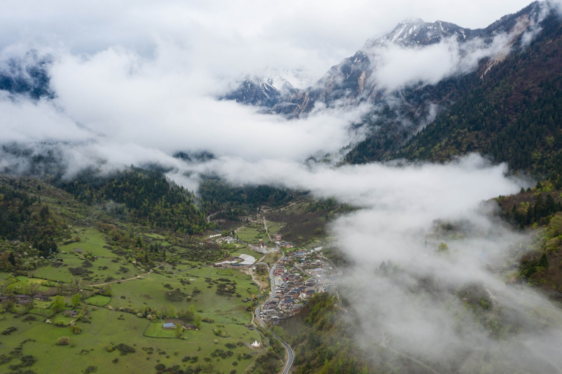 4月26日拍攝的中查溝景色(無(wú)人機(jī)照片)。
