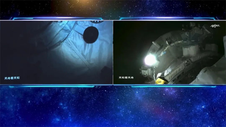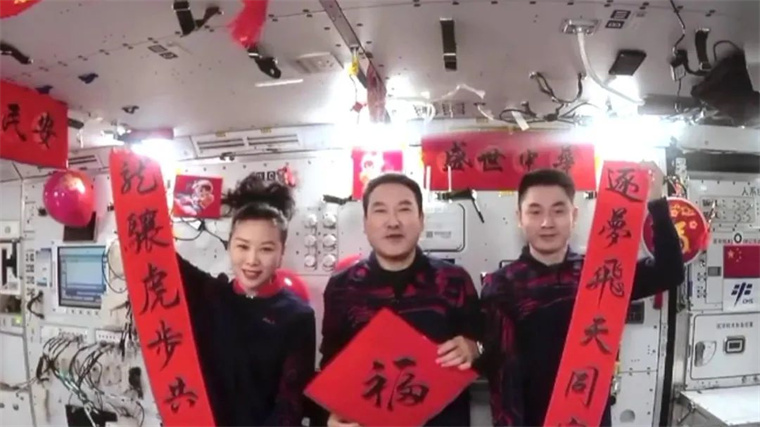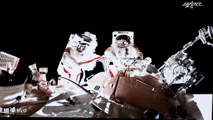 航天員翟志剛、航天員王亞平返回天和核心艙前向鏡頭揮手