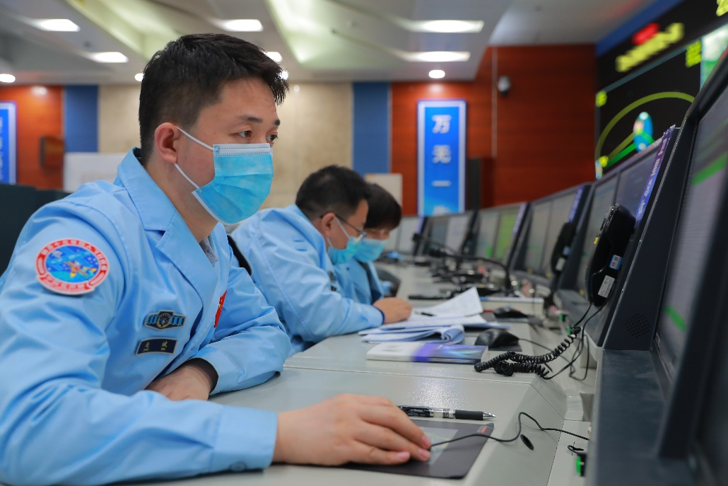 趙斌作為衛(wèi)星管控組長,始終在大廳的最前方坐鎮(zhèn)跟崗