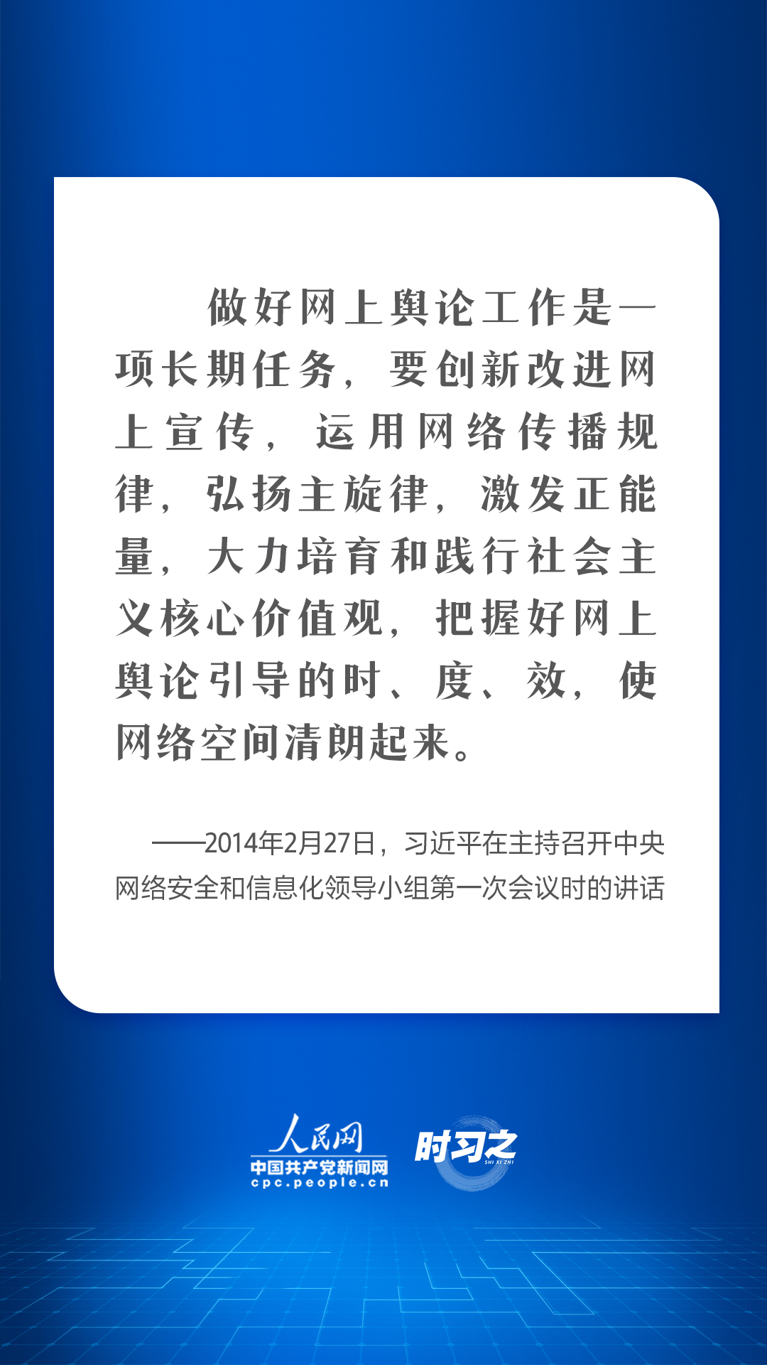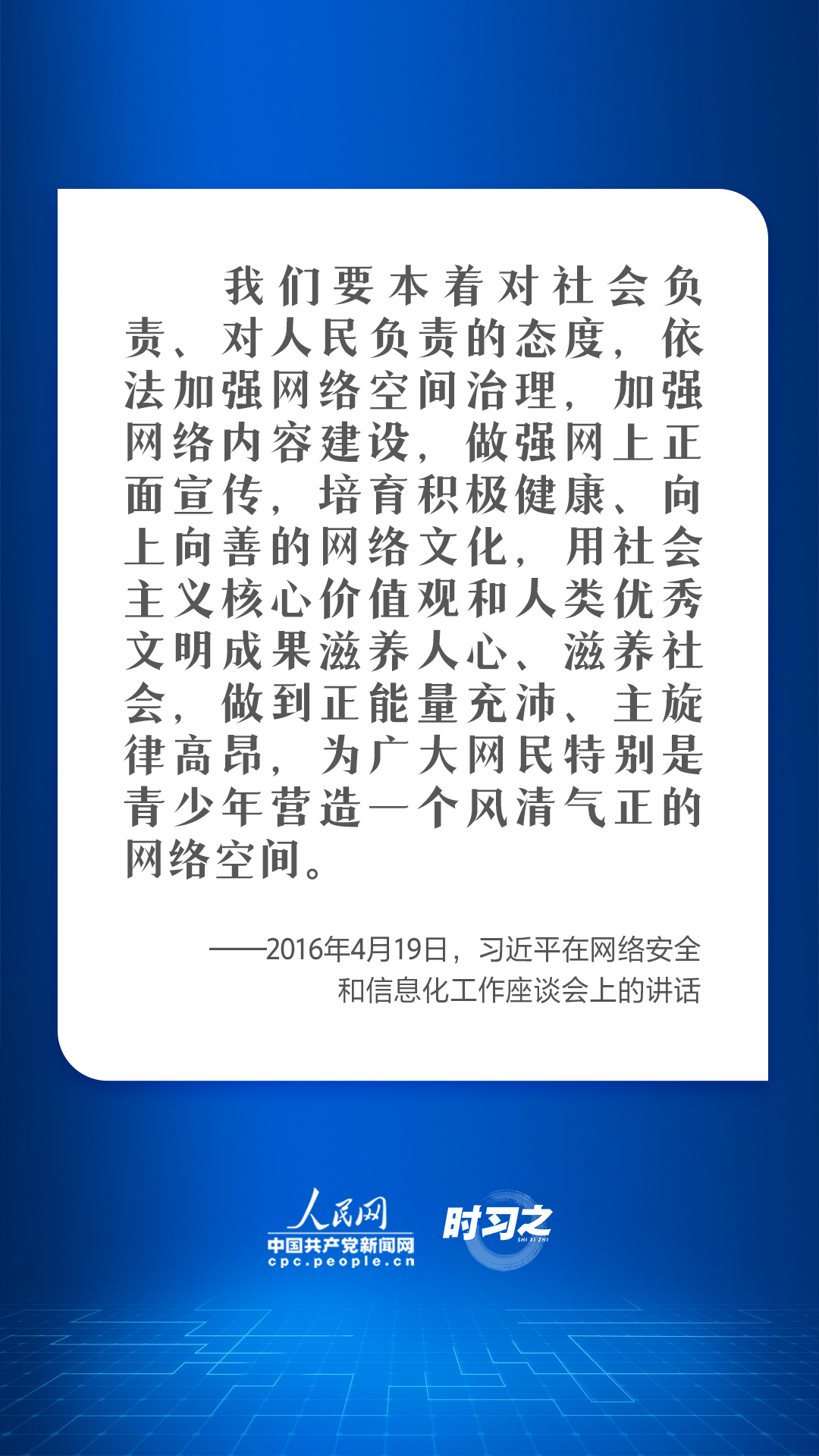 “網(wǎng)絡(luò)空間是億萬民眾共同的精神家園。網(wǎng)絡(luò)空間天朗氣清、生態(tài)良好,符合人民利益。網(wǎng)絡(luò)空間烏煙瘴氣、生態(tài)惡化,不符合人民利益?!币恢币詠?,習(xí)近平總書記始終高度關(guān)注網(wǎng)絡(luò)強國建設(shè),并提出要堅持發(fā)展和治理相統(tǒng)一、網(wǎng)上和網(wǎng)下相融合,廣泛匯聚向上向善力量。