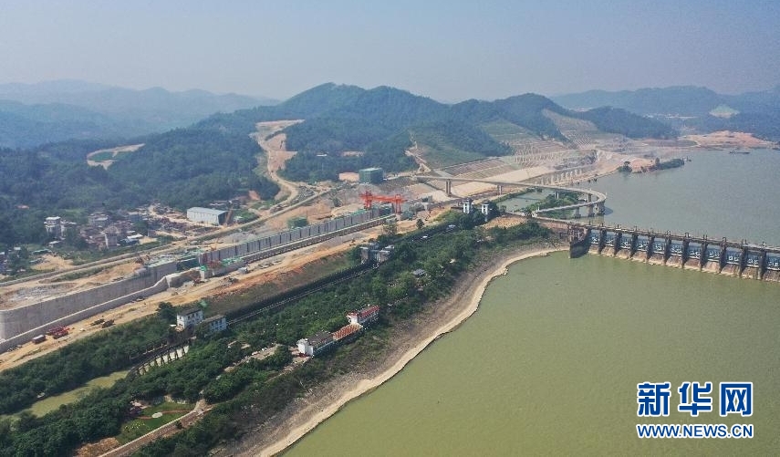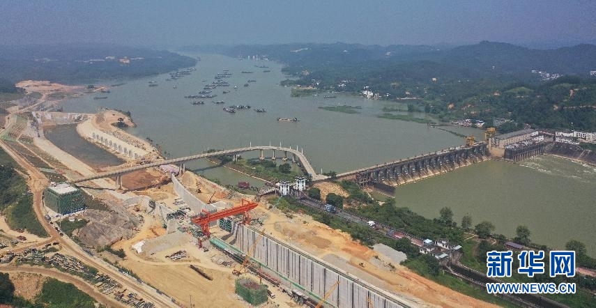 俯瞰正在建設的西津水利樞紐二線船閘工程。