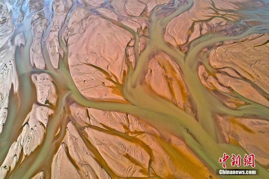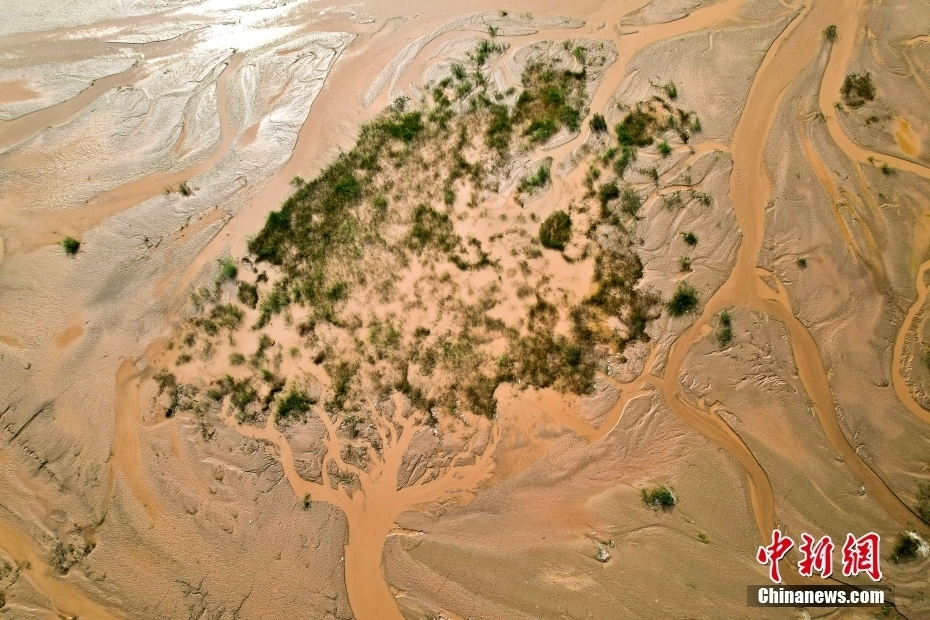 山西永濟(jì),俯瞰黃河河床如“綠樹(shù)”一般,畫面奇特。中新社發(fā) 寶成 攝 圖片來(lái)源:CNSphoto