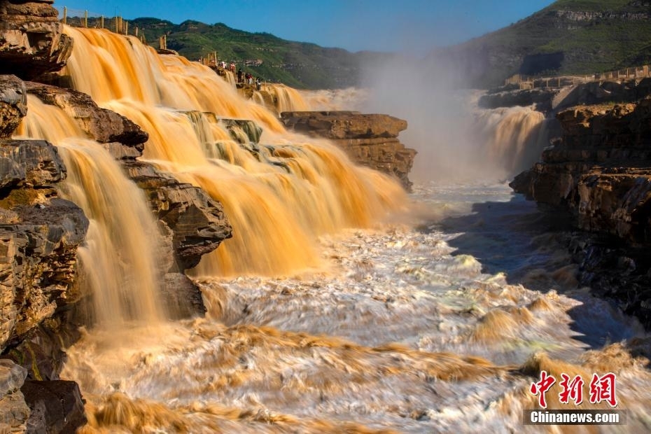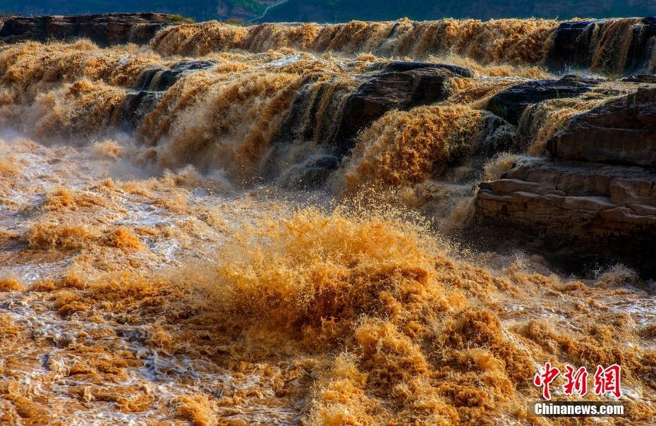 入伏后,黃河上游地區(qū)降雨增加,壺口瀑布水量大增,滔滔黃河水奔騰而下,濺起巨大的水霧,十里龍槽水位上升,主副瀑布連成瀑布群,如萬(wàn)馬奔騰,蔚為壯觀。 蘭華 攝