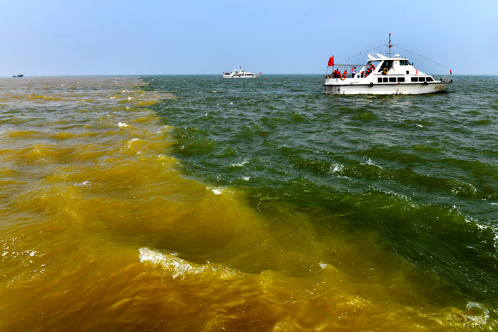 初秋,山東省東營市黃河入海口,河海相擁、黃藍交匯。