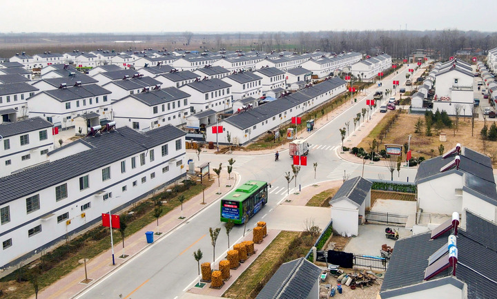 東明縣所在的菏澤市是山東省黃河灘區(qū)遷建的主戰(zhàn)場。3月3日,公交車穿行在菏澤市東明縣菜園集鎮(zhèn)鯤鵬社區(qū)。新華社記者 范長國 攝