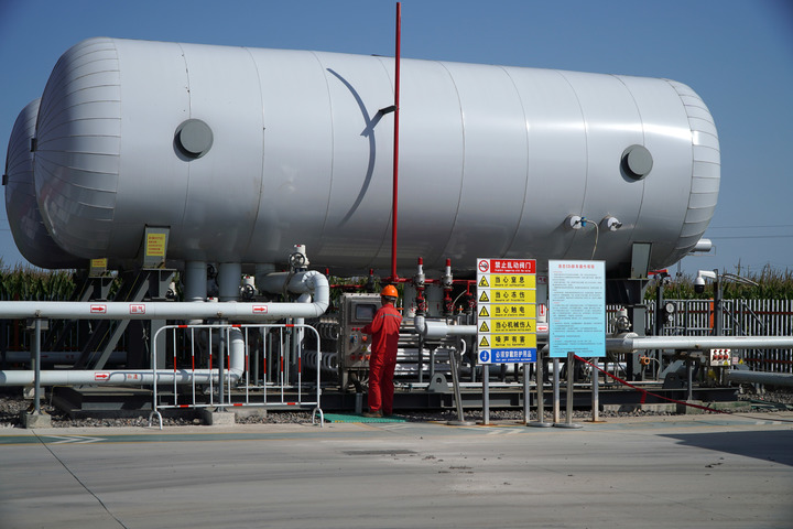 在位于山東省淄博市高青縣的齊魯石化—勝利油田百萬噸級碳捕集、利用與封存項目10號注氣站,一名工作人員在檢查設(shè)備(9月18日攝)。新華社記者 徐速繪 攝