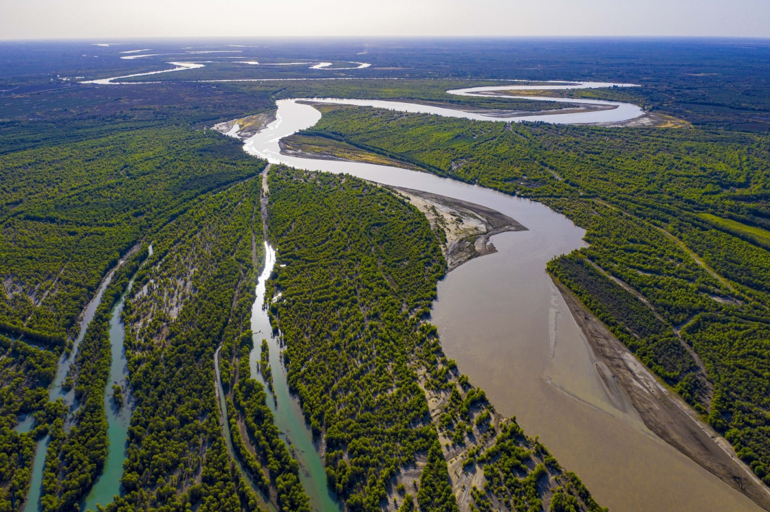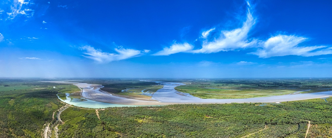 塔里木河流經(jīng)新疆阿拉爾市(2022年8月2日攝,無(wú)人機(jī)照片)。