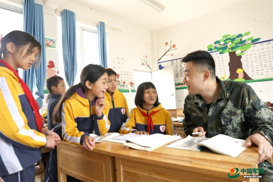 楊澤楠在云南扶貧時(shí)向孩子們傳授知識(shí)。