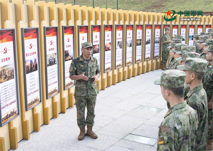 2022年6月,火箭軍某部舉行優(yōu)秀“四會”政治教員評選,何賢達成為唯一入選“優(yōu)秀政治教員標兵”的軍士。圖為何賢達在軍史長廊為戰(zhàn)友們講解光榮傳統(tǒng)。劉明松 攝