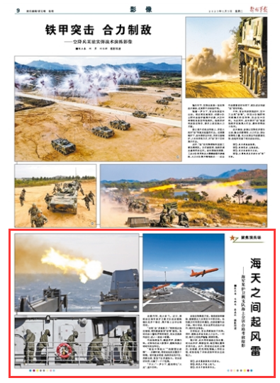 目標(biāo)臨近,官兵果斷施放干擾彈。同時(shí),艦艇各武備系統(tǒng)火力全開。一時(shí)間,海天之間炮聲隆隆,硝煙彌漫。
