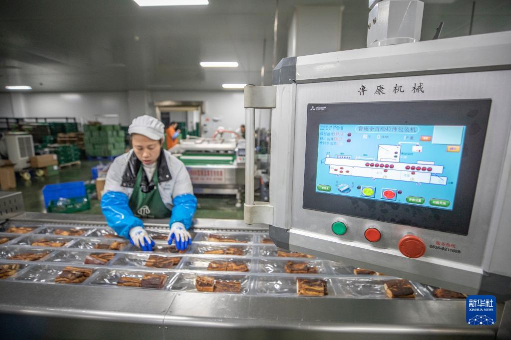 “智能設(shè)備不僅讓生產(chǎn)效率提高30%,成本下降5%,更保證了臘肉品質(zhì)的穩(wěn)定性。”該公司董事長王海明介紹,2022年公司產(chǎn)值超過5000萬元,售出700多噸臘肉。春節(jié)前的銷售旺季來臨,工人們正加班加點進行包裝。