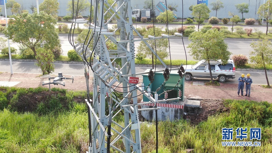 無人機先鋒突擊隊對架空線路及設備進行診斷。新華網發(fā)(孔德淇 攝)