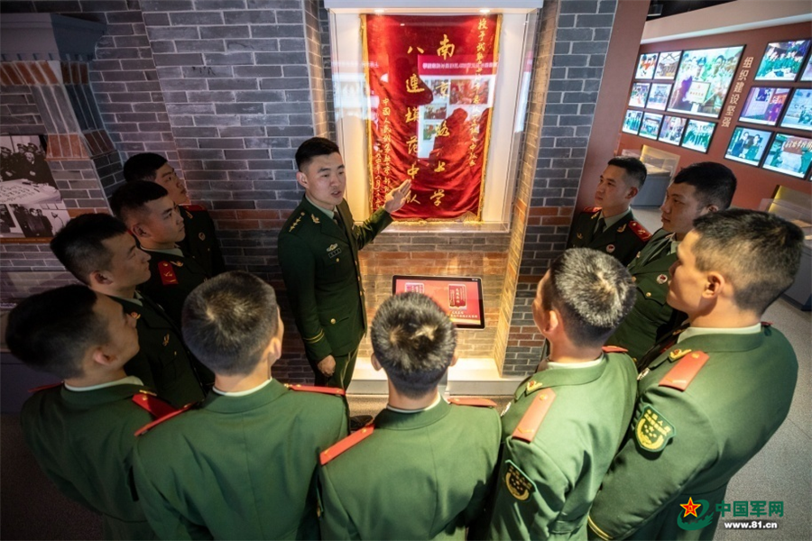 為了熟記解說詞,點燈熬油、加班加點成了家常便飯;為了加深對黨的歷史、黨的理論的理解和把握,他查閱書籍,探訪紅色場館,了解詢問每一個紅色歷史文物背后的故事,一有時間就“纏著”老師和講解員。最終,楊澤楠順利通過考核,成為中隊第40名黨史講解員。講解的是黨史,傳遞的是信仰?!拔覀凕h從哪里來、到哪里去”,“軍隊由誰締造、為誰扛槍打仗”……在一次次的講解傳遞中,在一次次的反復(fù)研讀中,黨史故事所蘊(yùn)含的偉大建黨精神在楊澤楠心中生根發(fā)芽。