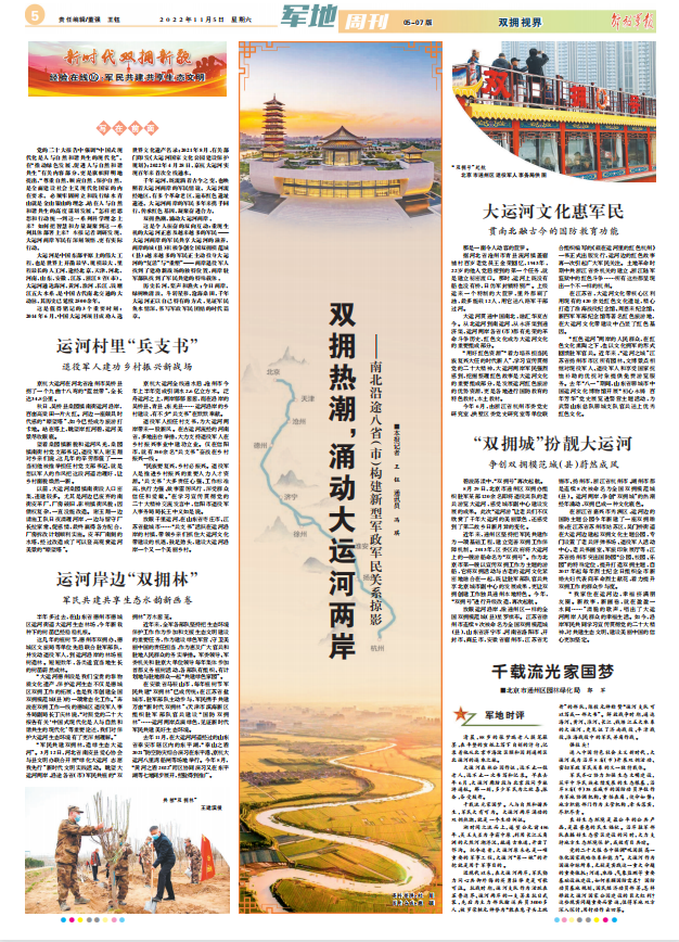 進(jìn)入中國(guó)特色社會(huì)主義新時(shí)代,大運(yùn)河成為沿岸8省(市)開(kāi)展雙擁活動(dòng)、密切軍政軍民關(guān)系的又一獨(dú)特載體。