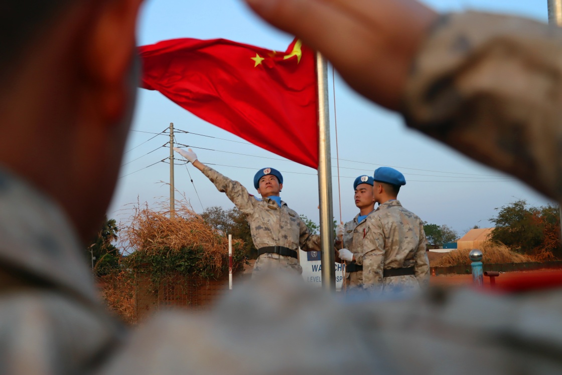 1月1日,中國(guó)第13批赴南蘇丹維和醫(yī)療分隊(duì)組織升國(guó)旗儀式。