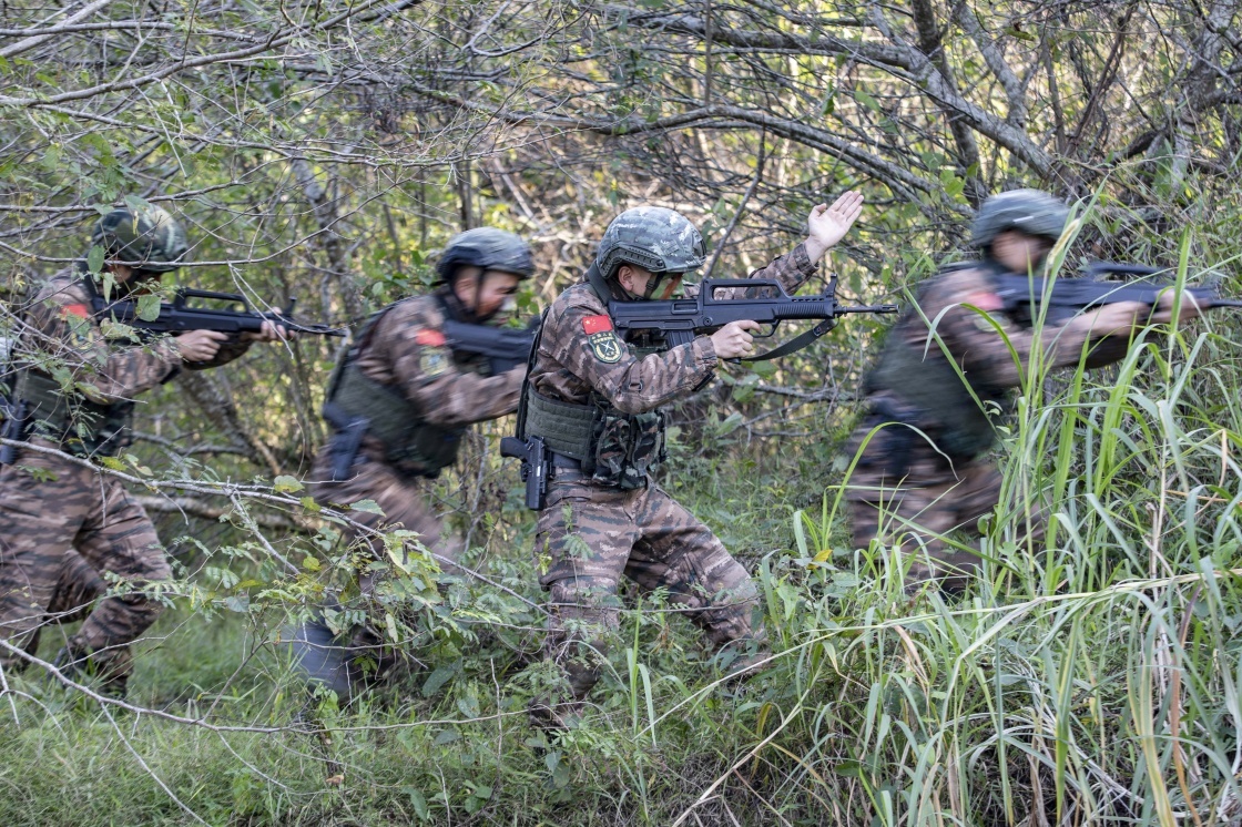 1月1日,武警廣西總隊(duì)防城港支隊(duì)組織特戰(zhàn)隊(duì)員進(jìn)行捕殲戰(zhàn)斗演練。
