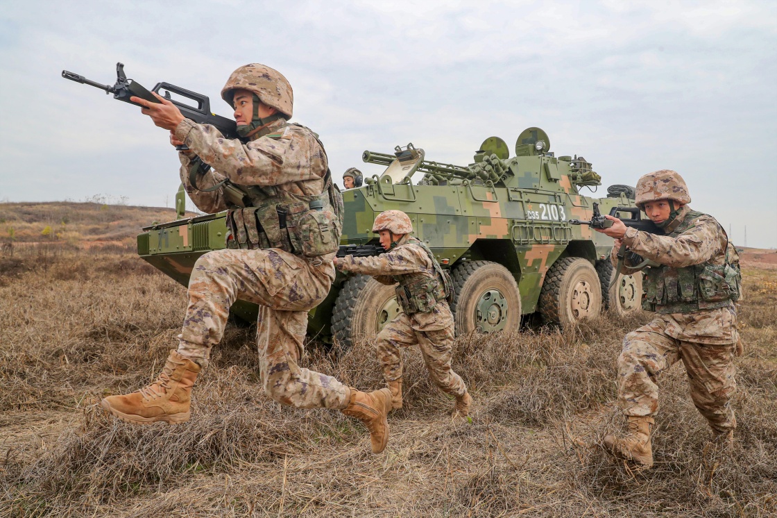 1月1日,陸軍第72集團(tuán)軍某旅裝甲步兵四連在野外陌生地域組織裝甲步兵班進(jìn)行戰(zhàn)術(shù)訓(xùn)練。