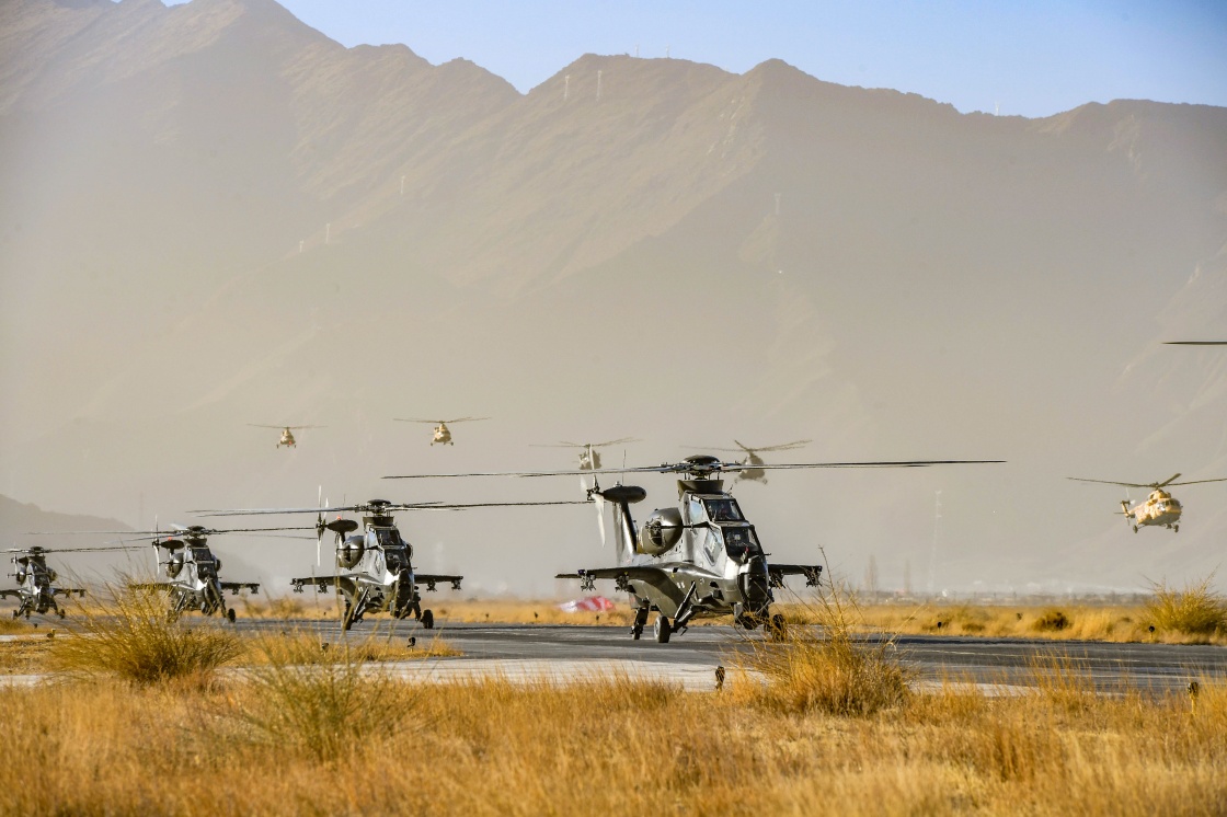 1月3日,在海拔3700米的拉薩某訓(xùn)練場(chǎng),西藏軍區(qū)某旅各型直升機(jī)依次升空,向預(yù)定作戰(zhàn)地域機(jī)動(dòng)。