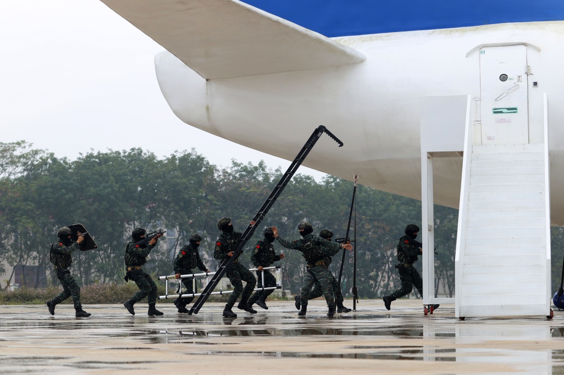 1月3日,武警海南總隊(duì)機(jī)動(dòng)支隊(duì)特戰(zhàn)分隊(duì)進(jìn)行反劫機(jī)演練。