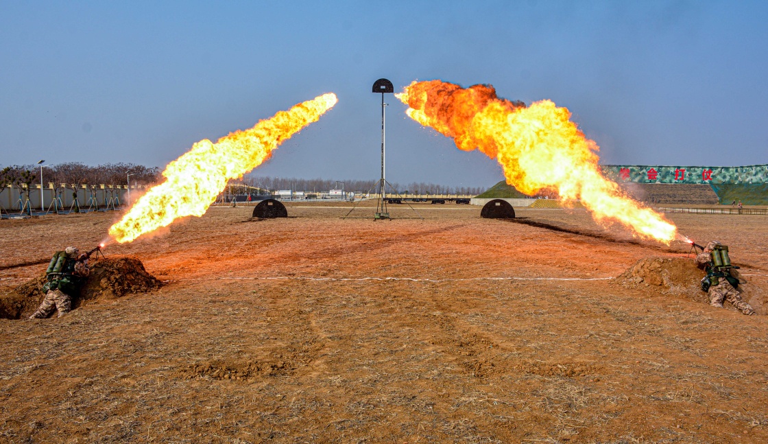 1月3日,武警安徽總隊(duì)機(jī)動(dòng)支隊(duì)組織防化分隊(duì)官兵開展噴火訓(xùn)練。