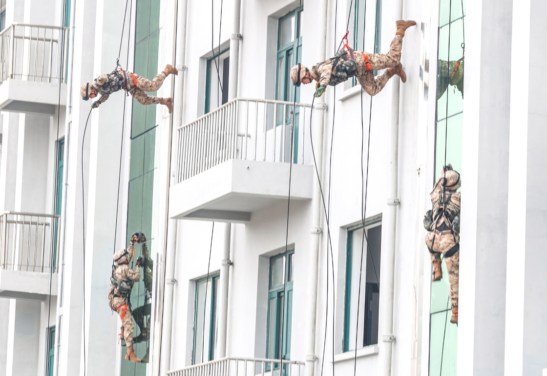 1月4日,武警廣西總隊(duì)防城港支隊(duì)特戰(zhàn)隊(duì)員開展反恐綜合演練。