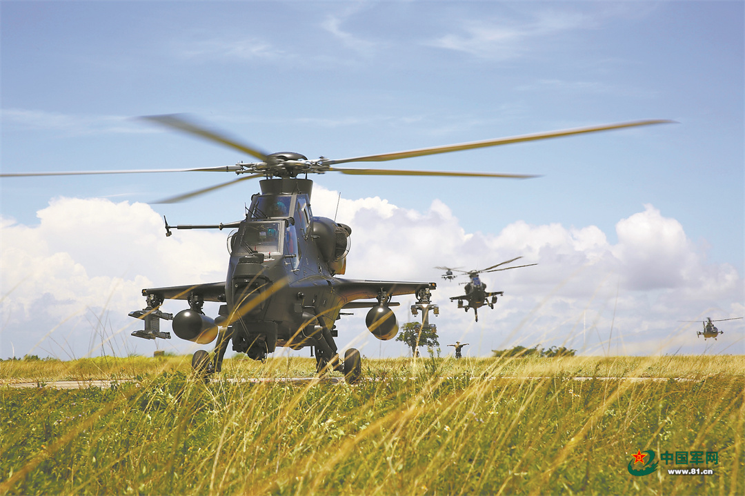 第74集團(tuán)軍某陸航旅組織飛行戰(zhàn)術(shù)演練,一架架戰(zhàn)鷹聞令出動。王 寧攝