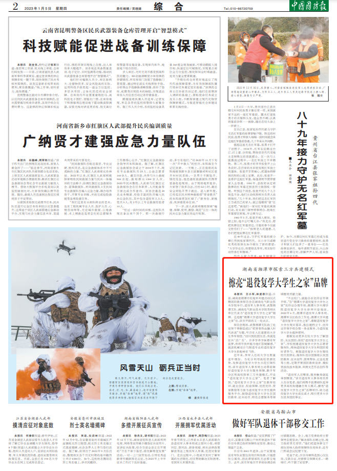 “退役軍人在哪里,服務(wù)觸角就延伸到哪里?!痹撌型艘圮娙耸聞?wù)局負(fù)責(zé)人告訴筆者,他們將攜手駐潭部隊(duì)延伸更多高校構(gòu)建融合育人模式,擦亮“退役復(fù)學(xué)大學(xué)生之家”品牌項(xiàng)目,助力退役復(fù)學(xué)大學(xué)生成長(zhǎng)成才,吸引更多大學(xué)生投身國(guó)防事業(yè)。