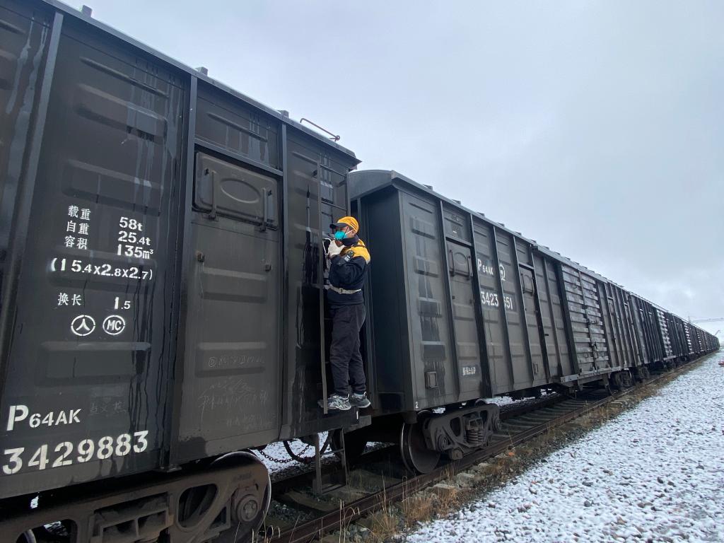 平均海拔超過4500米的西藏那曲市色尼區(qū)剛下完一場大雪,寒風呼嘯。重復爬車下車,彎腰摘接風管,大聲準確喊出聯(lián)控用語,緊接著撤除車列的防溜措施,青藏鐵路那曲火車站調(diào)車長達瓦次仁忙完一組調(diào)車作業(yè)后,嘴唇發(fā)紫、臉頰通紅,需要馬上吸氧才能緩過勁。