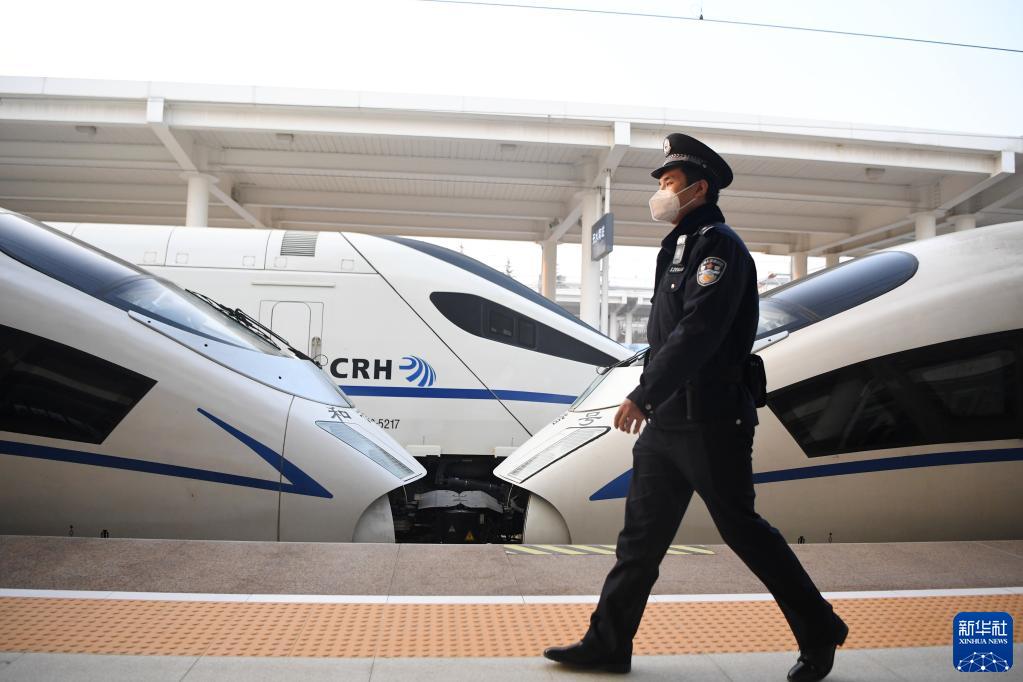 在12個(gè)半小時(shí)的動(dòng)車運(yùn)行時(shí)間里,白旭偉穿梭于各節(jié)車廂,仔細(xì)查看車廂重點(diǎn)部位、耐心回答旅客咨詢、對(duì)重點(diǎn)旅客進(jìn)行詢問(wèn)檢查、和列車工作人員一起疏導(dǎo)春運(yùn)客流……白旭偉和所有乘警一樣,在千里鐵道線上默默守護(hù)著旅客的平安出行。