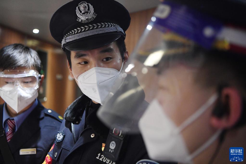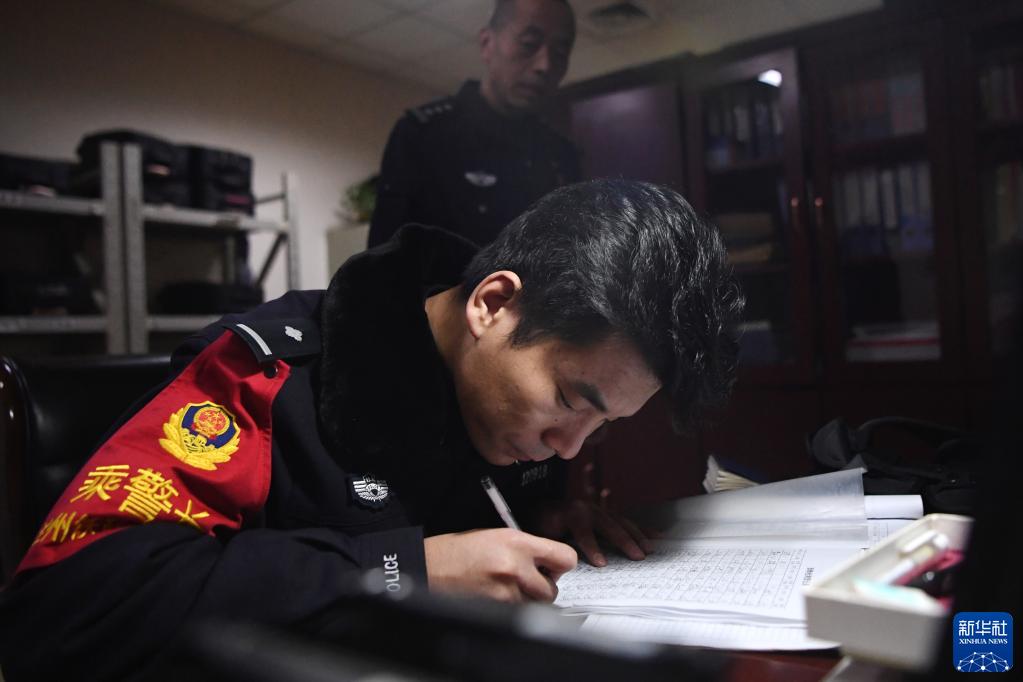 1月9日,白旭偉在值乘前檢查佩戴執(zhí)法記錄儀。新華社記者 陳斌 攝