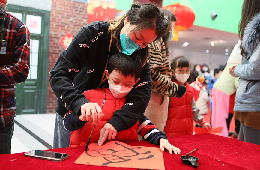 小朋友手寫(xiě)福字。天津市少年兒童活動(dòng)中心供圖