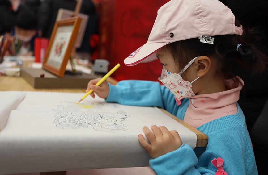 小朋友手繪年畫(huà)。天津市少年兒童活動(dòng)中心供圖