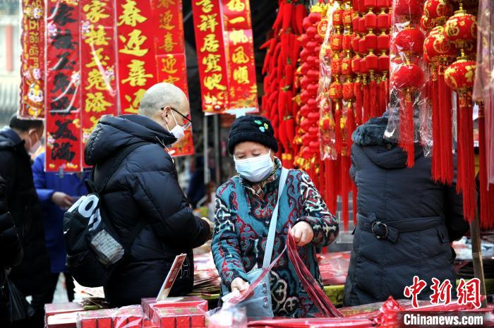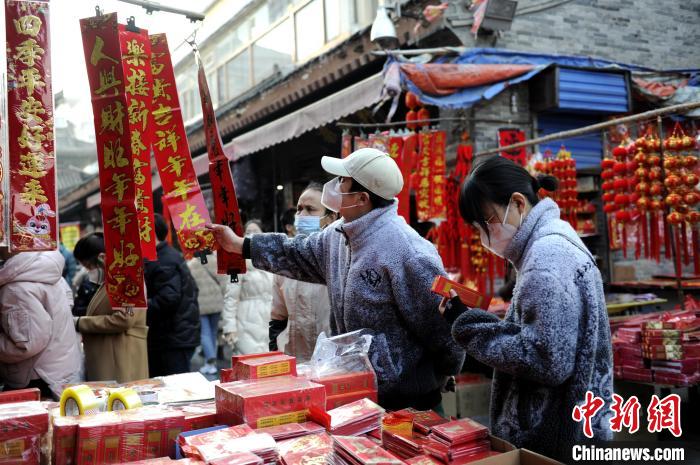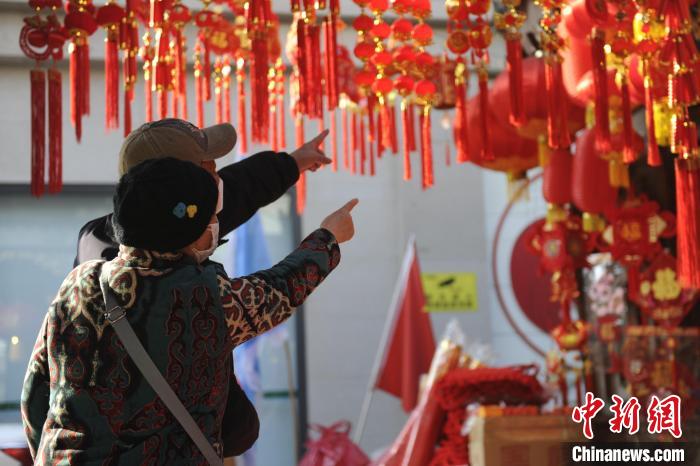 臨近中國農(nóng)歷兔年春節(jié),年味兒越來越濃,西安都城隍廟門庭若市,許多市民紛紛走上街頭,駐足在攤位前,挑選心儀的新春飾品,火紅的燈籠、喜慶的春聯(lián)和中國結(jié)等傳統(tǒng)飾物為新年增添了濃濃的年味兒。