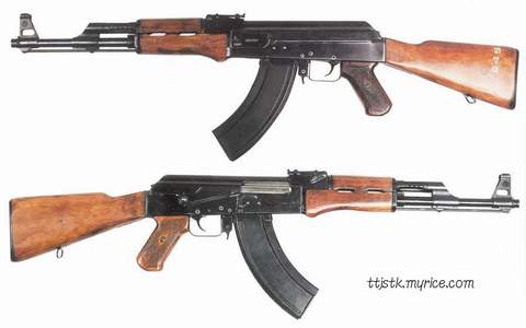 AK-47突擊步槍,在我國曾被稱為沖鋒槍(仿制的1956年式突擊步槍也曾長時間被稱為56式?jīng)_鋒槍)。于1947年定型,1949年裝備部隊。AK-47的動作可靠,勤務(wù)性好;堅實耐用,故障率低,無論是在高溫還是低溫條件下,射擊性能都很好,尤其在風沙泥水中使用,性能可靠;結(jié)構(gòu)簡單,分解容易。但是連發(fā)射擊時槍口上跳嚴重,影響精度,而且重量比較大。AK-47是裝備范圍相當廣泛的步槍,除前蘇軍外,世界上有30 多個國家的軍隊裝備,有的還進行了仿制或特許生產(chǎn)。據(jù)稱,死于AK-47槍口下人數(shù)遠遠大于核武器。蘇軍所裝備的AK-47于50年代末由其改進型AKM 所取代。目前國內(nèi)的網(wǎng)站和BBS上流行著一種說法,認為AK-47是抄襲了MP44/Stg44而設(shè)計出來的,證據(jù)就是兩者外形相似,而且“Stg44一出現(xiàn)馬上就有了AK-47的最終設(shè)計方案”,何況卡拉斯尼柯夫本人也聲稱是Stg44啟發(fā)了他設(shè)計AK-47的。但事實上Stg44和AK-47的基本結(jié)構(gòu)和原理,都有著極大的不同;AK-47的最終方案是經(jīng)過大量試驗的驗證而改進出來的,并不是突然就成型,就算是AK-46和AK-47之間都有很大的區(qū)別;至于所謂的外形相似,其實也只是輪廓投影的相似而矣,就外形而言,就算是剛接觸軍事的菜鳥都不可能把兩者外形搞混。1946年,卡拉斯尼柯夫開始設(shè)計突擊步槍。他的設(shè)計是在原設(shè)計的半自動卡賓槍上進行修改,這把樣槍稱之為AK-46。經(jīng)過3年多、十余個試驗槍型的研,1949年,AK-47突擊步槍定型,這種武器是為機械化步兵研制的,同一年蘇聯(lián)軍隊正式采用AK-47。這種型號并沒有刺刀,機匣和許多配件是用沖壓工藝來生產(chǎn)的,采用沖壓工藝的好處是材料消耗少,生產(chǎn)效率高。許多人把這種早期的AK-47稱之為“第1型”,以區(qū)分1951年和1953年生產(chǎn)的AK-47。AK-47的槍管與機匣螺接在一起,膛線部分長369mm,槍管鍍鉻;彈匣用鋼制成;AK-47的擊發(fā)機構(gòu)為擊錘回轉(zhuǎn)式,發(fā)射機構(gòu)直接控制擊錘,實現(xiàn)單發(fā)和連發(fā)射擊;發(fā)射機構(gòu)主要由機框、不到位保險、阻鐵、扳機、快慢機、單發(fā)杠桿、擊錘、不到位保險阻鐵等組成。AK-47的表尺射程為800m,有效射程為400m,但實際上300m以外都打不準了,連發(fā)精度更是低,按現(xiàn)代軍隊的要求已經(jīng)是不能滿足了,這是AK-47的一個缺點。槍機框后座時撞擊機匣底也是連發(fā)精度低的原因之一,而且還會很容易震松瞄準具。