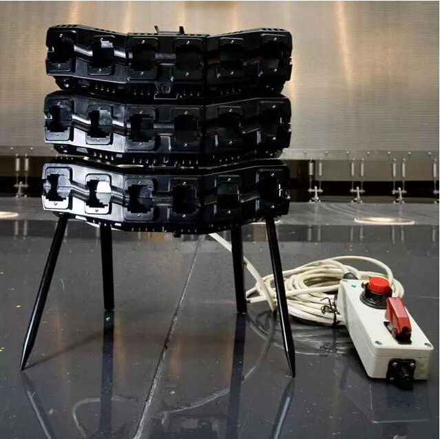 這是把24把泰瑟槍裝在一個架子上的東西,一按紅色按鈕,都被電著。據(jù)說和著名的Claymore有著一樣的殺傷力。
