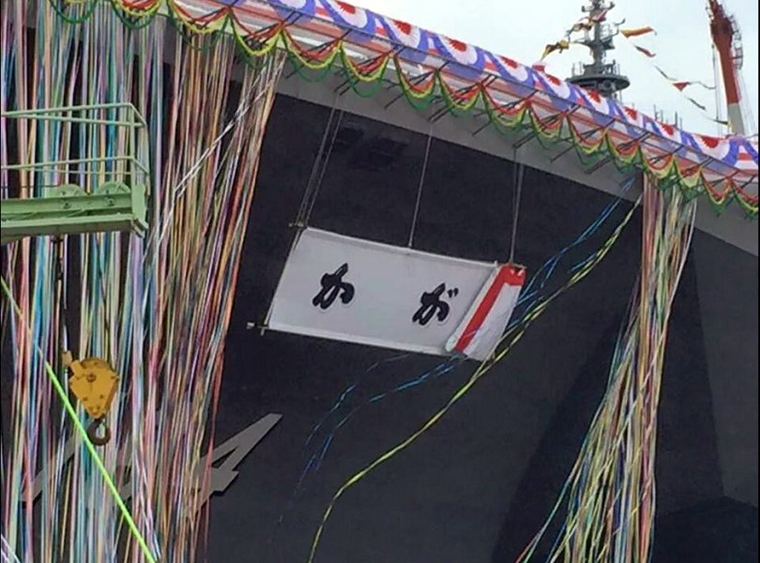 日本海上自衛(wèi)隊(duì)最新型準(zhǔn)航母DDH-184艦在橫濱船廠正式下水。該艦被命名為“加賀”號(hào)。該級(jí)別首艦“出云”號(hào)已于今年3月25日服役。