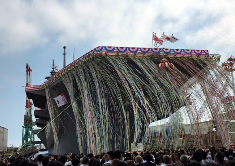 日本海上自衛(wèi)隊(duì)最新型準(zhǔn)航母DDH-184艦在橫濱船廠正式下水。